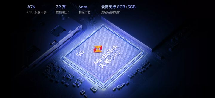 OPPO K9x搭载着全新天玑810处理器,采用台积电6nm制程工艺,A76八核架构,最高配置256GB内存,带来旗舰级5G体验。